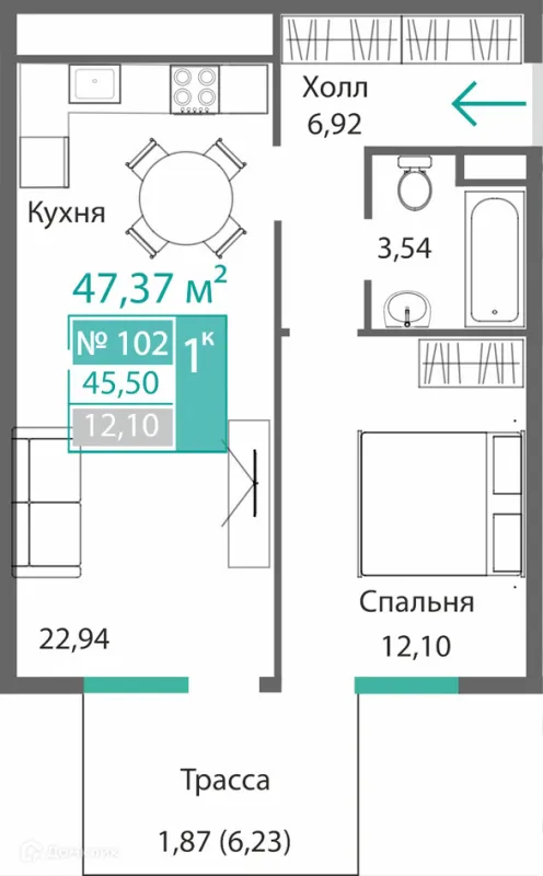 1 комн. квартира в Симферополе в ипотеку от 50 594 руб/месяц