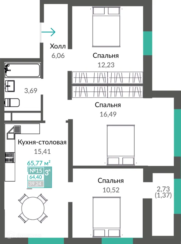 3 комн. квартира в Симферополе в ипотеку от 82 249 руб/месяц