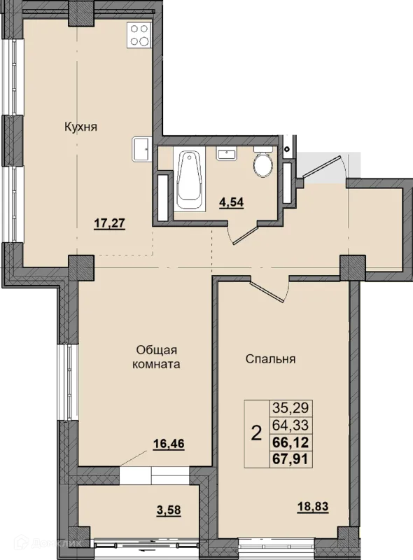 2 комн. квартира в Якутске в ипотеку от 65 970 руб/месяц