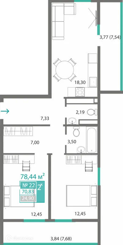 2 комн. квартира в Симферополе в ипотеку от 168 146 руб/месяц