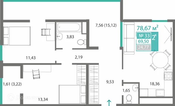 2 комн. квартира в Симферополе в ипотеку от 158 938 руб/месяц