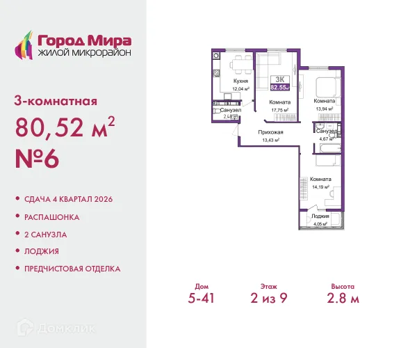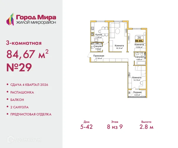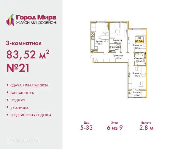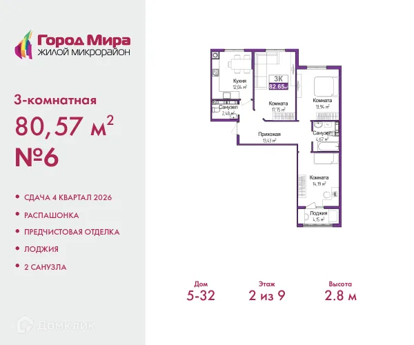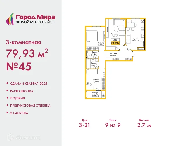 3 комн. квартира в Симферополе в ипотеку от 94 621 руб/месяц