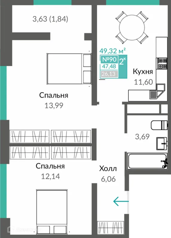 2 комн. квартира в Симферополе в ипотеку от 67 891 руб/месяц
