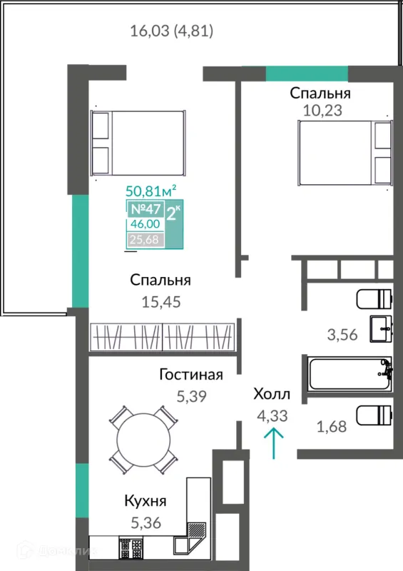 2 комн. квартира в Симферополе в ипотеку от 69 100 руб/месяц