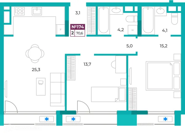 3 комн. квартира в Симферополе в ипотеку от 175 664 руб/месяц
