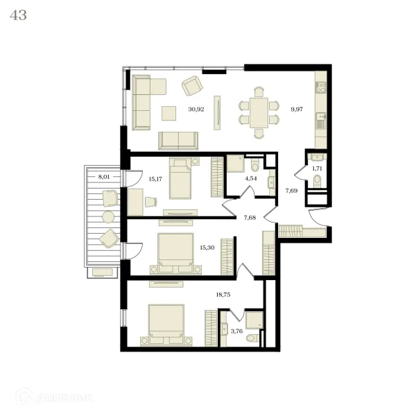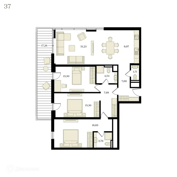 4 комн. квартира в Симферополе в ипотеку от 218 393 руб/месяц